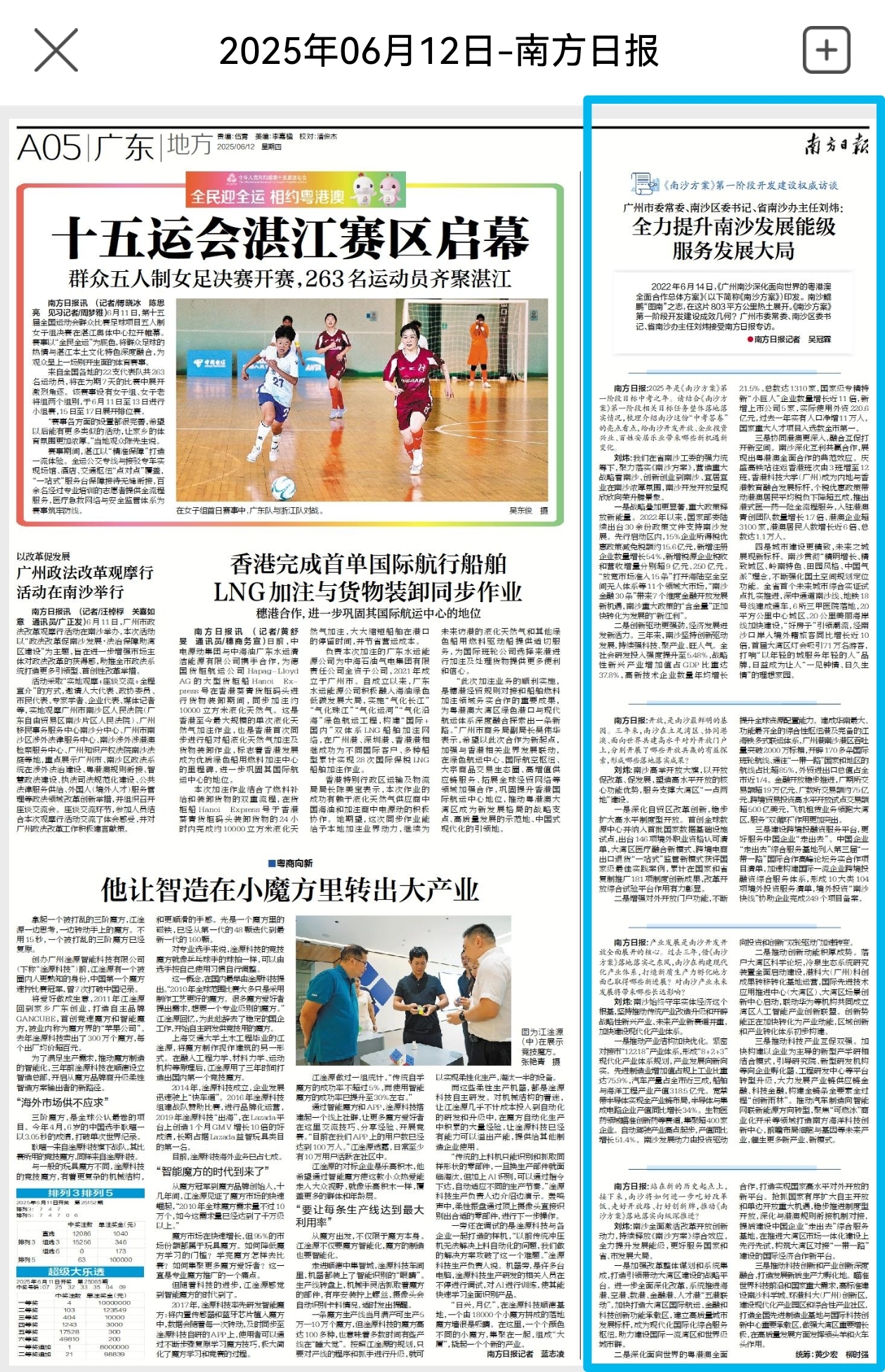 刘炜:三年来,南沙始终守牢实体经济这个根基,坚持推动传统产业改造升级和开辟战略性新兴产业、未来产业新赛道并重,加快建设现代化产业体系。